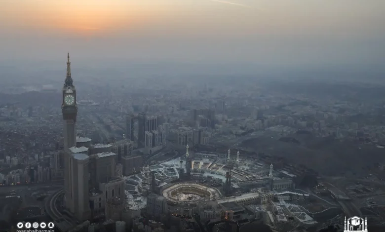 ورصدت عدسة إدارة مركز الأخبار بالرئاسة العامة لشؤون المسجد الحرام والمسجد النبوي، وبالتعاون مع طيران الأمن، صوراً جوية على ارتفاع 1000 متر للمسجد الحرام والمنطقة المركزية والطرق المؤدية له وسط أجواء يسودها الأمن والأمان والطمأنينة.