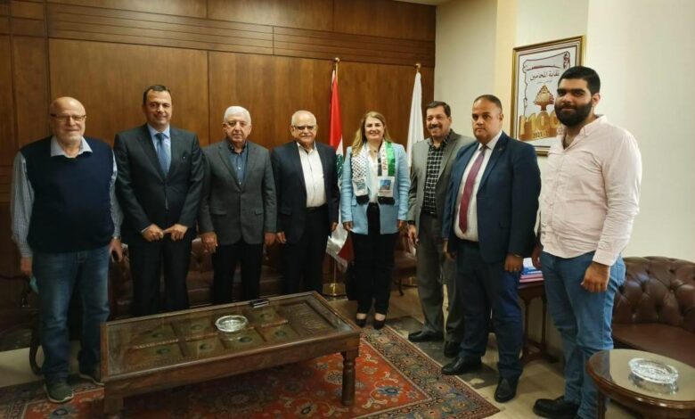 وفي ختام الزيارة قدم البروفيسور السحمراني للنقيبة القوال علماً فلسطينياً يحمل صورتي المسجد الأقصى وكنيسة القيامة كعربون محبة وتقدير.