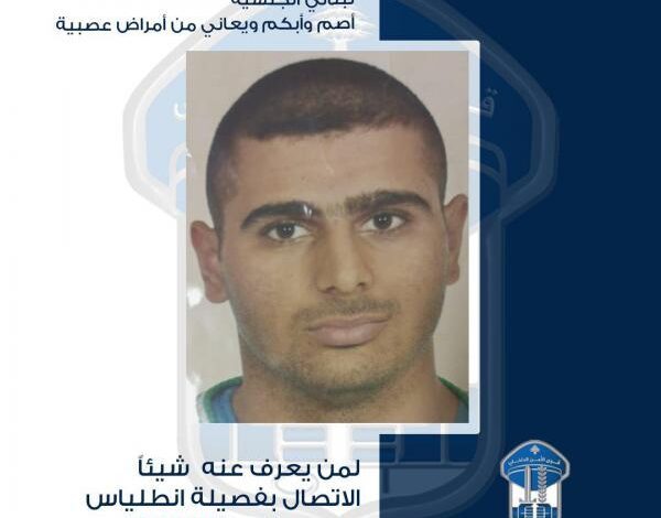 صدر عن المديرية العامة لقوى الأمن الداخلي – شعبة العلاقات العامة ما يلي: “تُعمِّم المديرية العامة لقوى الأمن الداخلي، بناءً على إشارة القضاء المختص، صورة المفقود كناز شادي صالح (من مواليد عام 2003، لبناني)، الذي غادر بتاريخ اليوم 08-6-2022، إحدى المستشفيات التي يتلقى فيها العلاج ولم يعُد لغاية تاريخه، مع العلم انه يعاني من أمراض عصبية ونفسية، وهو أصم وأبكم.