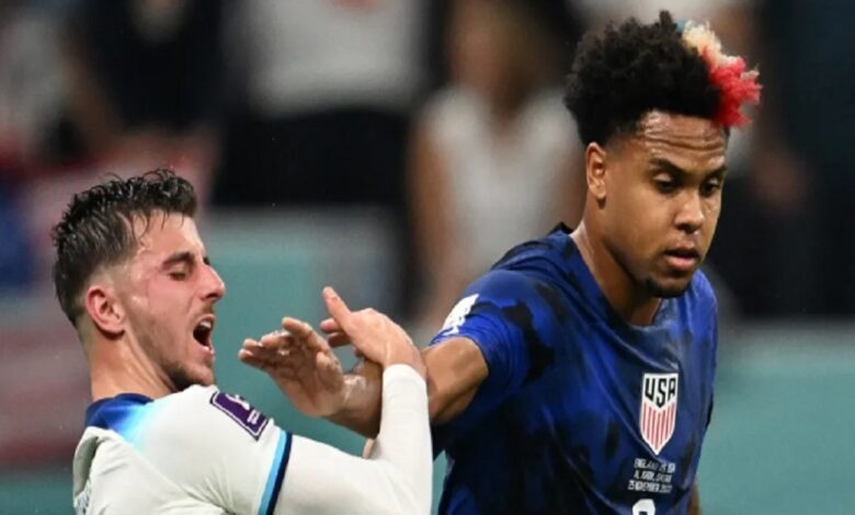 رصدت عدسة مباراة منتخب الولايات المتحدة وإنجلترا، ضمن منافسات المجموعة الثانية بكأس العالم، لقطة “مشينة” من لاعب أميركي خلال الشوط الأول.