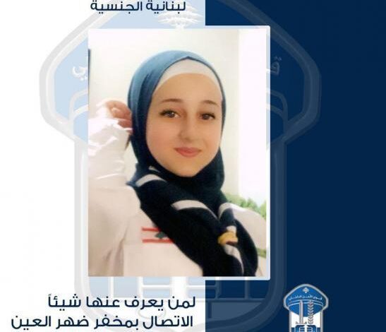 وطلبت المديرية من الذين شاهدوها ولديهم أي معلومات عنها أو عن مكانها، الاتصال بمخفر ضهر العين في وحدة الدرك الاقليمي، على الرقم: 415463-06، للإدلاء بما لديهم من معلومات.