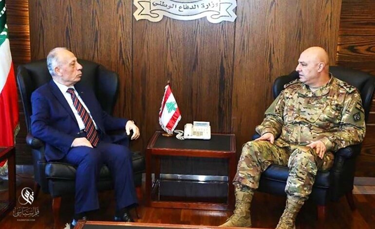 بحث وزير الدفاع الوطني موريس سليم، في مكتبه في اليرزة مع قائد الجيش العماد جوزاف عون، في اوضاع المؤسسة العسكرية والوضع الامني العام في البلاد.