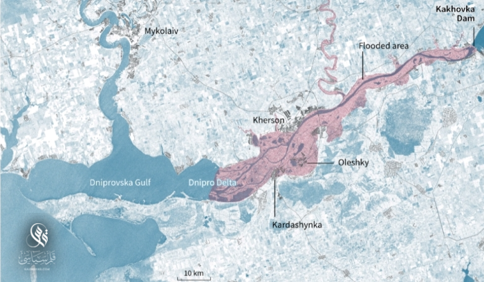 لقي ثمانية أشخاص حتفهم في الفيضانات في الجزء الذي تحتلّه روسيا من منطقة خيرسون، بينما سيستمر ارتفاع منسوب المياه عشرة أيام أخرى، حسبما نقلت “وكالة الصحافة الفرنسية “عن رئيس الجزء المحتل في منطقة خيرسون فلاديمير سالدو، وقال” :”إجمالاً، غمرت المياه 22273 منزلا في 17 بلدة. ووفقاً للتوقّعات، يمكن أن يستمر ارتفاع منسوب المياه 10 أيام أخرى”، موضحاً أنّ حصيلة الوفيات الناجمة عن الفيضانات “ارتفعت إلى ثمانية”.