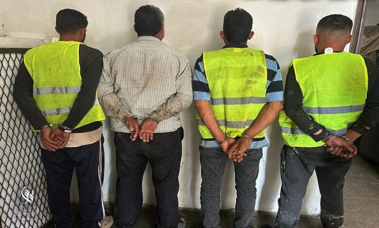 وقد ضبطت في حوزتهم معدات لفتح أغطية قنوات الصرف الصحي، وعدة قَطْع، إضافة إلى بيك أب نوع تويوتا يحمل لوحة مزورة كان يُستخدم لنقل المسروقات.