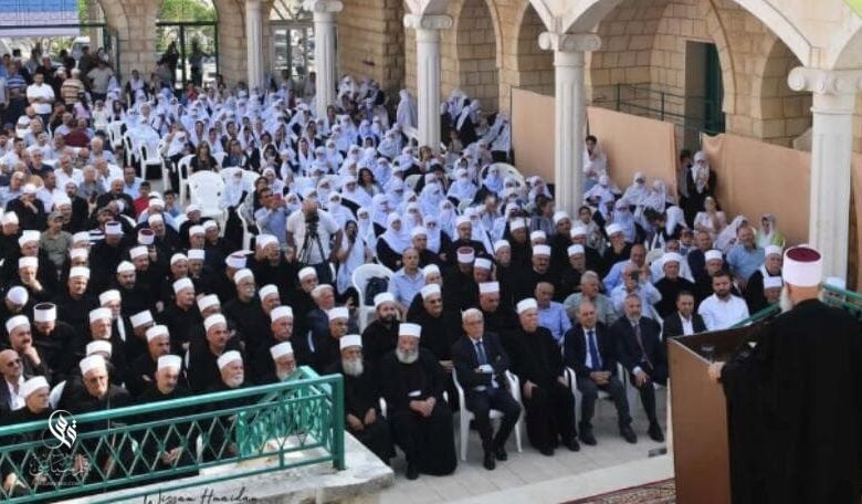 وتابع: “من مقام النبي أيوبَ (ع)، نُطلقُ النداءَ والرجاء، داعين إلى التمسُّك بقيَمِ الأخوَّة والمحبة مع القريب والغريب، ومؤكِّدين على ثوابت صَون النفس وصَون المجتمع، إذ لا أمانَ لنا ولا ضمانَ لوجودِنا ومستقبلِنا إلَّا بتمتين ركائزِنا التوحيدية المعروفية الوطنية الثلاث: الفرض والعرض والأرض، أي التمسُكِ بالدين والأخلاق والوطن، فالإيمانُ والاعتقادُ الراسخُ سلاحُنا الأمضى في مواجهة تحدّيات القدر والحياة، ومحافظتُنا على مكارم الأخلاق والقيم المعروفية درعُنا الواقية من مخاطر العولمة وفوضى الحرية، وتعلُّقُنا بأرضِنا ومشاركتُنا الفاعلة في بناء الدولة والدفاع عن الوطن وتأكيد العيش الواحدِ فيه هو ضمانةُ سلامِنا وسلامِه، إذ لا بديلَ عنه سوى التشتُّتِ والاغتراب”.
