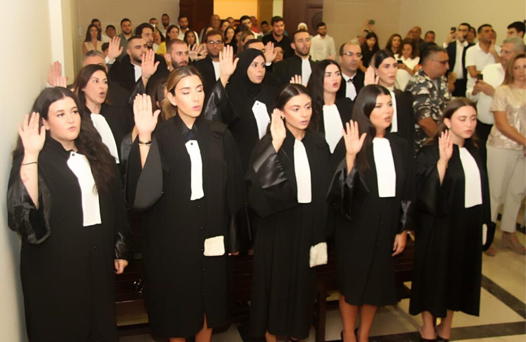 ليتلو بعدها الرئيس احمد رامي الحاج قسم “يمين المحاماة” ليُرددها وراءه المتدرجون، وينطلقوا في مسيرتهم المهنية وهم : د. كلير خطار فخر الدين، د. مصباح وليد عرابي، د.جيلبير رشوان سليمان، الياس سليم جنيد، ريتا جرجي معلوف، لانا وليد الأحدب، الأمير مجد الأمير غالب الايوبي، مواصف معروف المانع، عمر محمود المشلاوي، جوي ميشال فضل الله، ميرا شوقي ساسين، ماريات جرجس فنيانوس، غايا أنطوان جريج، جوليا عصام بيطار، زياد عصام بيطار، جاد احمد شندب، غنوه حاتم حمزة.