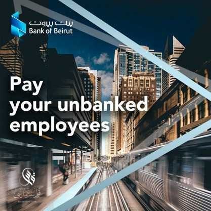 لتجنب عبء صرف الرواتب على أصحاب العمل في نهاية كل شهر، يقدم بنك بيروت خدمة إلكترونية مبتكرة للشركات، وهي بطاقات Pay Cards التي تُمكّن المؤسسات من تسديد رواتب وأجور الموظفين والعمال الموسميين والمياومين بطريقة تلقائية وفورية. تُقدّم هذه الخدمة الإلكترونية عبر الإنترنت، دون الحاجة إلى زيارة المصرف، وعدم وجود حساب مصرفي للمستفيدين. لمزيد من المعلومات: