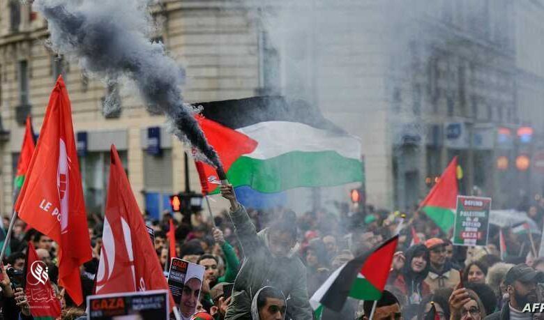 وقال النقابي كلود ماريل (85 عاما) لوكالة فرانس برس “ببساطة نخرج كناشطين أو مواطنين عاديين إلى الشارع لدعم الشعب الفلسطيني”.