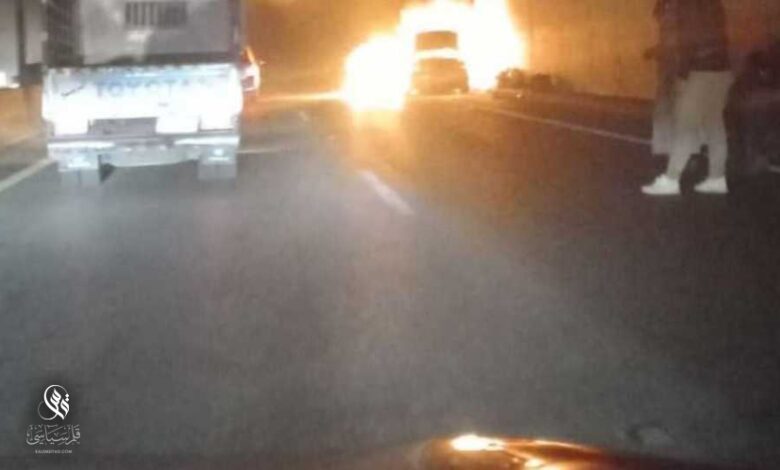 ولم يُعرَف بعد السبب الذي أدّى إلى اشتعال السيارة إلى جانب الطريق.