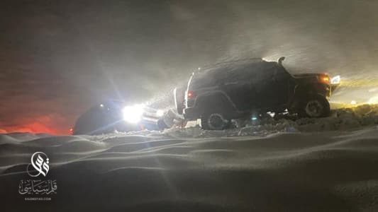 أعلن الدفاع المدني عبر منصة “إكس” أنّ عناصره أنقذوا أربعة مواطنين احتجزوا داخل سيارتين رباعيتي الدفع جراء تراكم الثلوج في جرد عيون السيمان – كفردبيان- كسروان.