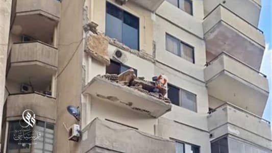 سقطت شرفة شقة من أحد الأبنية السكنية في مدينة صور، من دون وقوع إصابات، وقد اقتصرت الأضرار على الماديات.