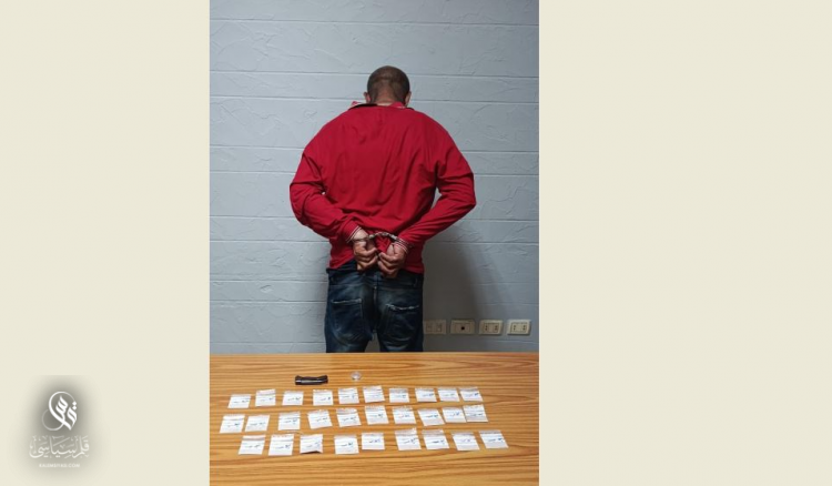 بتاريخ 13- 04- 2024 وبعد رصدٍ ومراقبة دقيقة، أوقفته إحدى دوريّات الشّعبة في صيدا، وضبطت بحوزته 39 كيسًا تحتوي على مادّة الهيرويين، وعلبة بلاستيكية بداخلها مادّة باز الكوكايين، وسكين.
