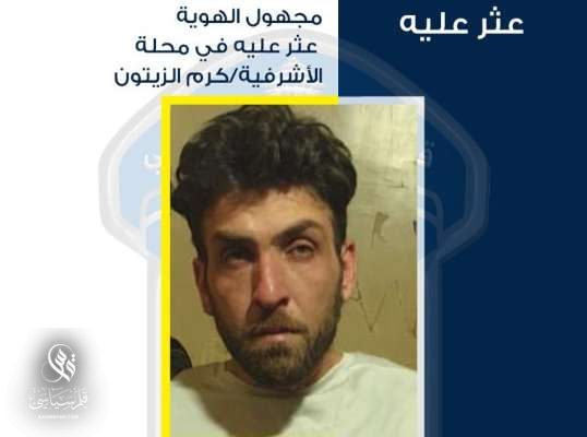 قوى الأمن تعمم صورة شخص مجهول الهوية