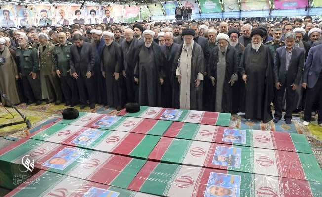 أمّ المرشد الأعلى للجمهورية الإيرانية علي خامنئي المصلين على جثمان الرئيس إبراهيم رئيسي في العاصمة طهران، وسط حضور حشود رسمية وشعبية.