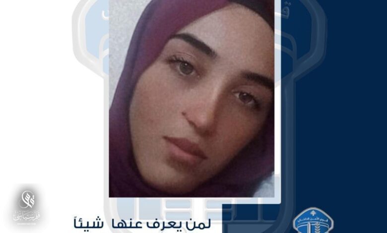 صــدر عــــن المديريّـة العـامّـة لقــوى الأمــن الـدّاخلي ـ شعبة العـلاقـات العـامّـة البــــــلاغ التّالــــــي: تُعمّم المديريّة العامّة لقوى الأمن الداخلي، بناءً على إشارة القضاء المختص، صورة المفقودة نسيبة أحمد الزابو (مواليد عام 1998، سورية)، التي غادرت بتاريخ 26-5-2024 منزلها الكائن في محلة المريجة، ولم تَعُد لغاية تاريخه.