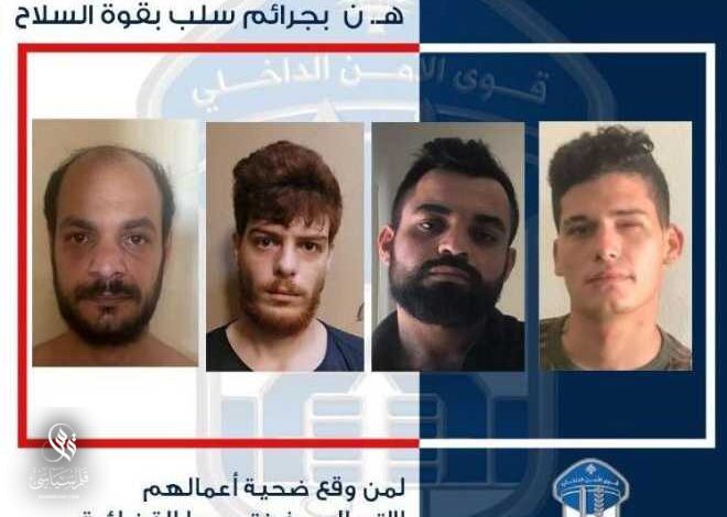 الحاقاً لبلاغنا الصادر بتاريخ 29-5-2024، حول توقيف مفرزة استقصاء الجنوب في وحدة الدرك الإقليمي عصابة يقوم أفرادها باستدراج الضحايا عبر أحد مواقع التواصل الاجتماعي بغية سلبهم مقتنياتهم بقوة السلاح، وهم كل من: