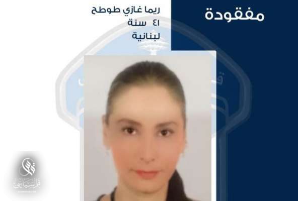 عممت المديريّة العامّة لقوى الأمن الداخلي، بناءً على إشارة القضاء المختص، صورة المفقودة: ريما غازي طوطح (مواليد عام 1983، لبنانيّة) التي غادرت بتاريخ 11-6-2024 منزلها الكائن في محلة عين الرمانة، ولم تَعُد لغاية تاريخه”.