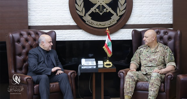 استقبل قائد الجيش العماد جوزاف عون في مكتبه في اليرزة سفير الجمهورية الاسلامية في ايران لدى لبنان مجتبى أماني يرافقه الملحق العسكري الإيراني العقيد بالا زادة وتناول البحث الأوضاع العامة في لبنان والمنطقة.