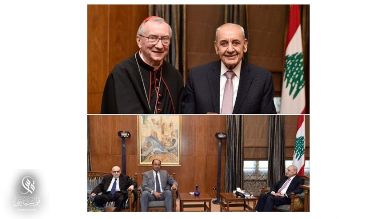إستقبل رئيس مجلس النواب نبيه بري في مقر الرئاسة الثانية في عين التينة أمين سر الفاتيكان الكاردينال بيترو بارولين والوفد المرافق، في حضور سفير الفاتيكان في لبنان المونسنيور باولو بورجيا والمستشار الإعلامي لرئيس المجلس علي حمدان ، حيث تم عرض للأوضاع العامة والتطورات السياسية لاسيما الملف الرئاسي.