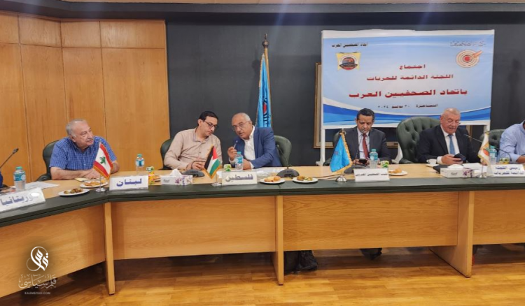 عقدت اللجنة الدائمة للحريات الصحافية في الاتحاد العام للصحافيين العرب اجتماعا في القاهرة، في مقر نقابة الصحافيين في مصر في نهاية تموز الماضي برئاسة رئيس اللجنة عبد الوهاب الزغيلات وحضور رئيس نقابة الصحافيين في مصر خالد البلشي و نائب رئيس اللجنة علي يوسف ومقرر اللجنة محمد اللحام و الأعضاء ناقشت خلاله خصوصا الوضع في غزة وفلسطين والعدوان الصهيوني المجرم على غزة والضفة الغربية ولبنان وكذلك الوضع في السودان واصدرت بنتيجة اجتماعها بيانا حمل عنوان: “اعلان فلسطين“.