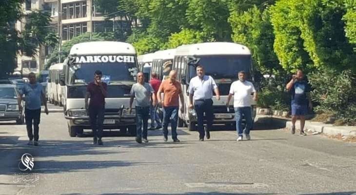 أقدم مجموعة من سائقي الباصات العمومية على قطع الطريق امام منزل وزير الداخلية في حكومة تصريف الاعمال بسام مولوي في مدينة طرابلس احتجاجاً على الفوضى وغياب الأمن التي يعاني منها قطاع النقل في الشمال.