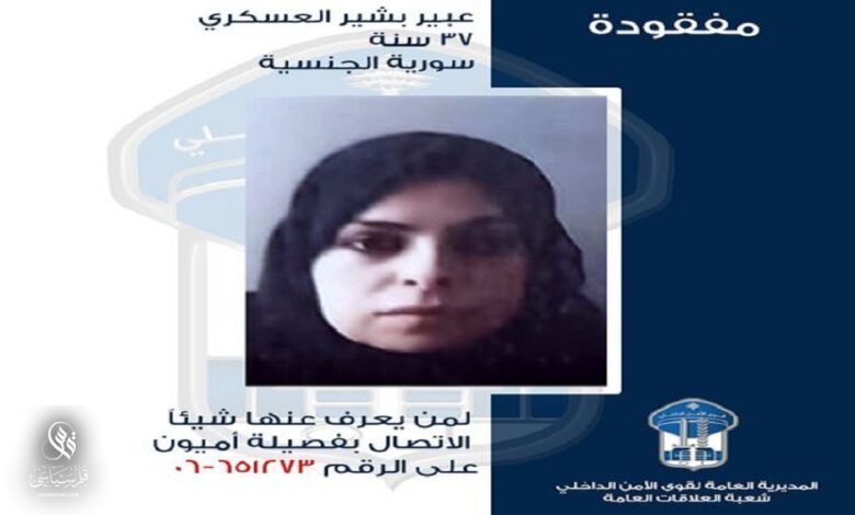 عممت المديريّة العامّة لقوى الأمن الدّاخلي، بناءً على إشارة القضاء المختص، صورة المفقودة:
