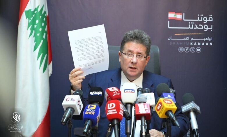 وتوقّف كنعان، بحسب زواره، أمام تكرار لما سبق أن ردده البعض في الأيام الماضية بالبيانات والتصريحات عن أن المبادرة لا تطرح في الإعلام. لذلك، ذكّر زواره بالكتاب الموجه من قبله إلى رئيس التيار بتاريخ 10 نيسان 2024 بعيداً من الإعلام، لافتاً إلى أن النظام الداخلي ينصّ على أن صلاحية الإحالة ووضع أي بند على جدول أعمال المجلس السياسي تعود لرئيس الحزب حصراً.
