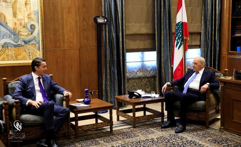 وسبق ذلك، لقاء بين الرئيس بري وكبير مستشاري وزارة الدفاع البريطانية لمنطقة الشرق الأوسط وشمال إفريقيا الأدميرال إدوارد ألغرين».