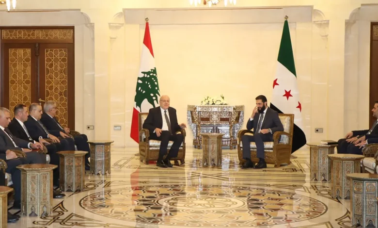 التطور البارز الاخر تمثل امس في زيارة الرئيس ميقاتي لسوريا في اول زيارة بعد اطاحة نظام الاسد، واجتمع مع قائد الإدارة الجديدة في سوريا أحمد الشرع في قصر الشعب.وأكد ميقاتي في مؤتمر صحفي مشترك مع الشرع ان “لبنان يحتضن أعداداً كبيرة من اللاجئين وبات من الملحّ للبلدين معالجة هذا الملف سريعاً ولمستُ لدى الشرع كل الترحيب للعمل عليه”.أضاف: “أكّدنا على العلاقات الندية وطالما أن سوريا بخير لبنان بخير وعلينا تفعيل العلاقات الإيجابية وتطرقنا إلى موضوع الحدود وحماية أمن البلدين ومنع أي أعمال قد تسيء لسوريا ولبنان”. وتابع ميقاتي: “ترسيم الحدود البرية بين لبنان وسوريا على سلّم الأولويات ويجب ضبط الحدود بشكل كامل لوقف أي عملية تهريب بين البلدين”.