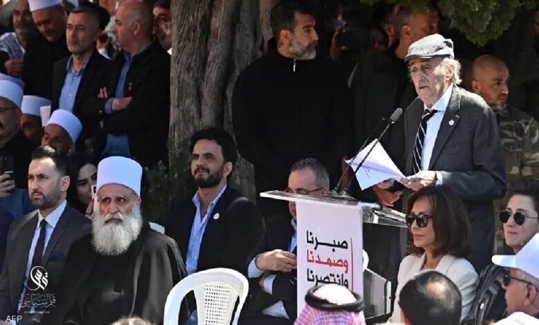 واذ دعا وليد جنبلاط الى «التمسك بالهوية العربية للبنان، والى اهمية تحرير الجنوب من الاحتلال «الاسرائيلي»، ومتابعة ترسيم الحدود حفاظا للقرارات الدولية وحفاظا على السيادة، واعادة اعمار الجنوب من خلال وضع الية موثوق بها عربيا ودوليا، واعادة بناء العلاقات اللبنانية – السورية على قواعد جديدة وترسيم الحدود برا وبحرا»، توجه الى بني معروف قائلا:»في مئوية سلطان الاطرش، حافظوا على هويتكم العربية وعلى تاريخكم النضالي المشترك مع الوطنيين العرب والسوريين، في مواجهة الاستعمار والانتداب، في مواجهة احتلال الارض في الجولان السوري. حافظوا على تراثكم الاسلامي، واحذروا من استخدام البعض منكم من اجل تقسيم سورية. حافظوا على ارثكم الفكري والنضالي والسياسي».