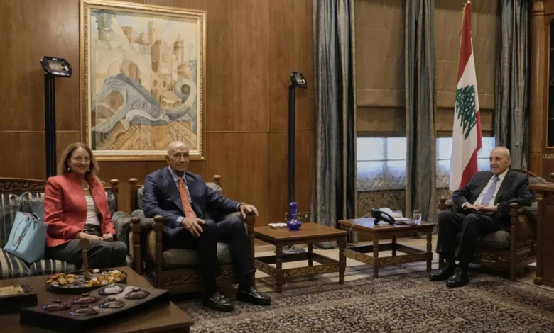 وقالت رئاسة البرلمان في بيان لها: «استقبل رئيس مجلس النواب نبيه بري في مقر الرئاسة الثانية سفير الولايات المتحدة الأميركية في تركيا الموفد الخاص إلى لبنان وسوريا توماس براك والوفد المرافق، في حضور السفيرة لدى لبنان ليزا جونسون والمستشار الإعلامي للرئيس بري علي حمدان».
