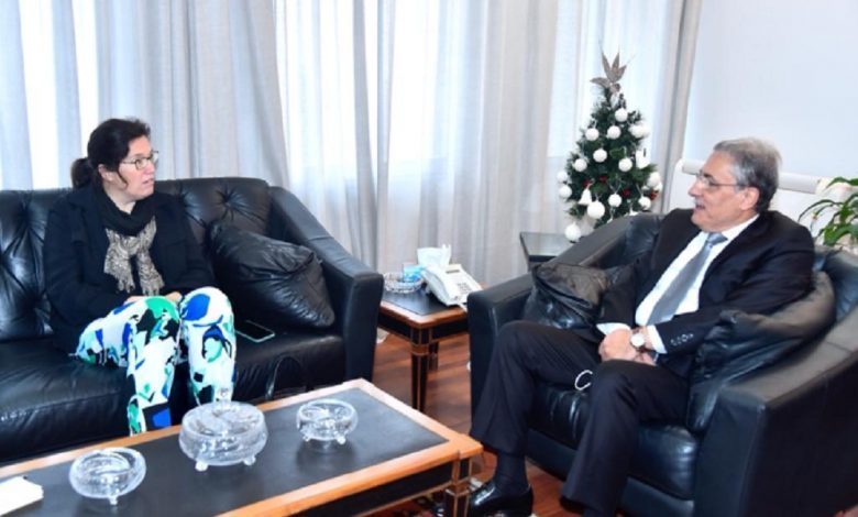 بحث وزير العدل القاضي هنري الخوري مع الممثلة المقيمة لبرنامج الأمم المتحدة الإنمائي في لبنان سيلين مويرو، في مكتبه في الوزارة في أطر التعاون المشترك بين وزارة العدل ومنظمة الأمم المتحدة.