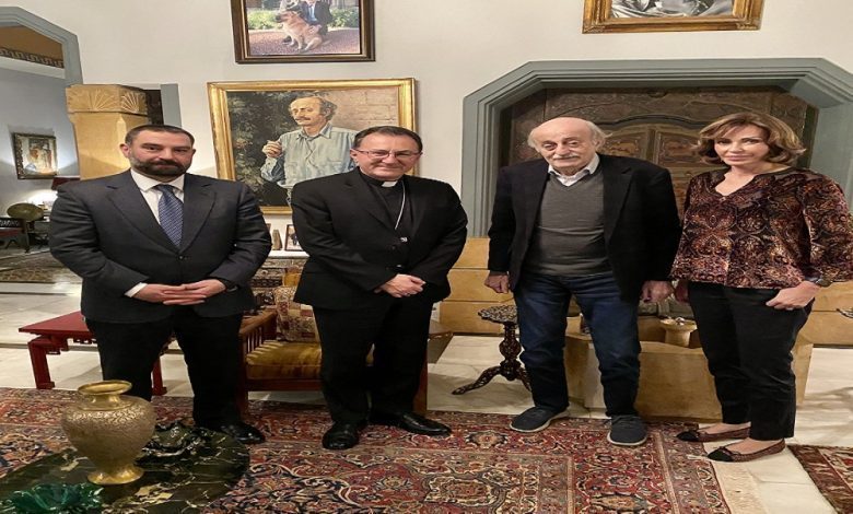 كشف رئيس الحزب “التقدمي الاشتراكي” وليد جنبلاط عبر حسابه على “تويتر” عن “اجتماع ودي عائلي وسياسي مع سفير دولة الفاتيكان الـ Monseigneur Joseph Spiteri بحضور  النائب ابراهيم عازار”.