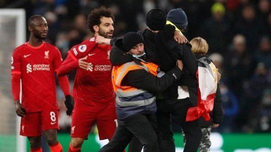 اقتحم مشجّع يحمل علم مصر، ملعب مباراة توتنهام وضيفه ليفربول في الدوري الإنكليزي، وتوجّه نحو المصري محمد صلاح وتشبّث بقميصه.