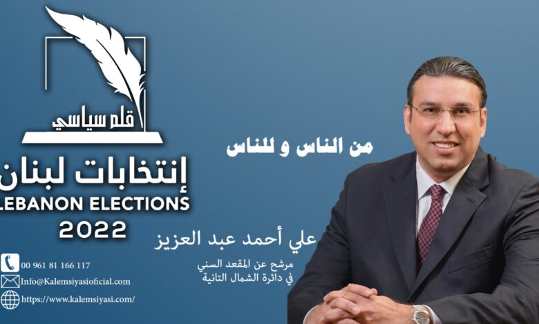 المرشح عن المقعد السني في الضنية علي عبد العزيز لقلم سياسي : نحن أمام فرصةٍ ذهبيةٍ لصناعة مستقبلنا ولسنا من أصحاب نظرية “ما خلونا”