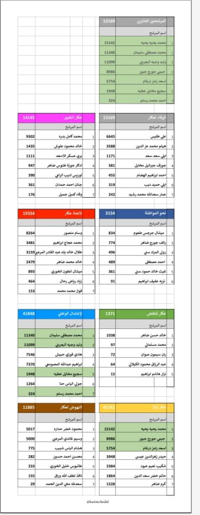 كما فاز 3 مرشحين على لائحة “عكار أولاً” التي استحصلت على 41761 صوتاً.