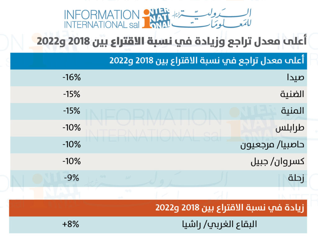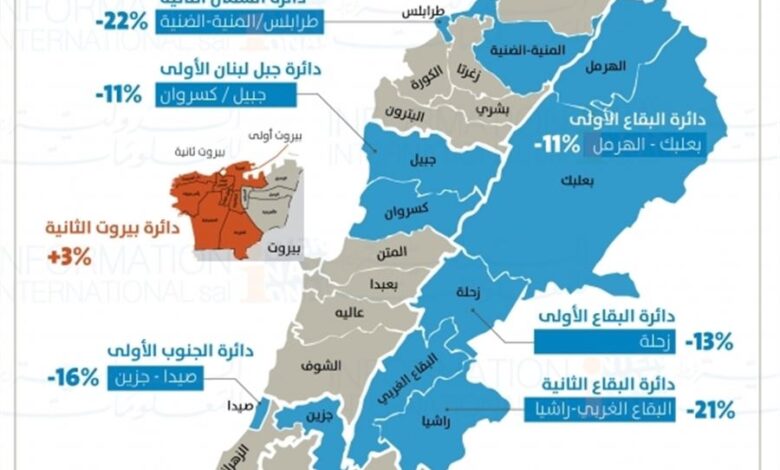 تراجعت نسبة الاقتراع العامة من 49.7% إلى 41.1%، وقد اختلفت نسبة التراجع من دائرة إلى أخرى، فأعلى نسبة تراجع كانت في صيدا وبلغت (-16%) تليها المنية (-15%) والضنية ثم طرابلس.
