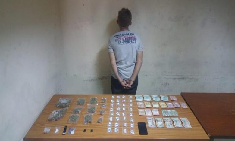 وأضاف: “بتفتيشه والسّيارة، تمّ ضبط كميّة من المخدّرات، هي عبارة عن: