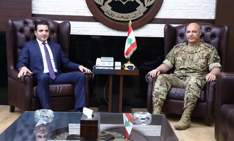 استقبل قائد الجيش العماد جوزاف عون في مكتبه في اليرزة النائب إيهاب مطر وتناول البحث الأوضاع العامة في البلاد.