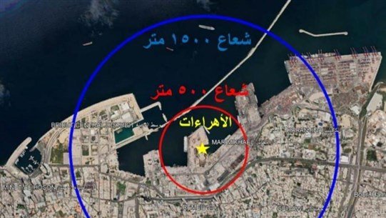 • من المتوقع أن تتأثر المنطقة الأبعد (بين شعاع 500 و 1500 متر تقريبًا) والتي تتضمن الكرنتينا، الجعيتاوي، مار متر، وسط بيروت، بكميات محدودة من الغبار. وسيترسّب الغبار المتطاير خلال فترة لا تزيد عن 24 ساعة كحد أقصى.