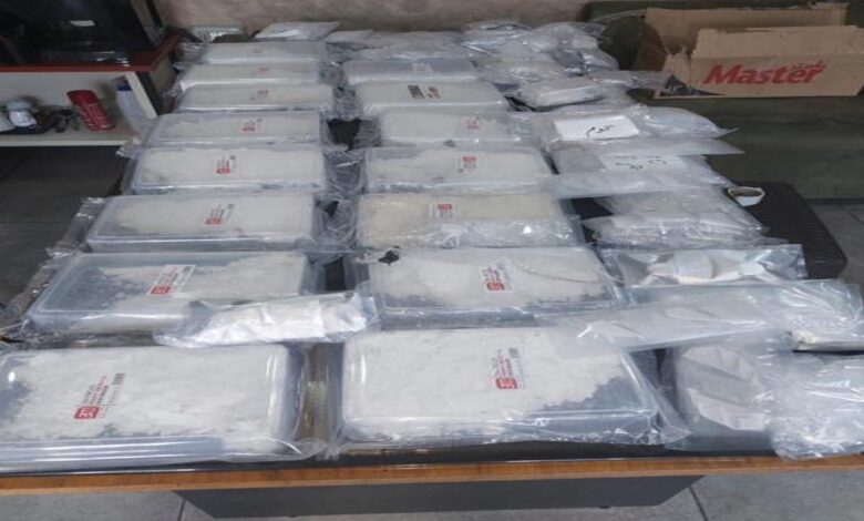 بتفتيشهم والآليّة، عُثر على حوالى /6/ كلغ. من مادّتي الكوكايين وباز الكوكايين موضّبة في أظرفة ورقية وعلب و “طبّات” بلاستيكية، ومعدّة للترويج.