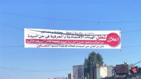 على مدخل حي السيدة في مدينة زحلة، من حيث تنطلق منطقتها الصناعية، رفعت منذ أيام لافتة، حملت الإعلان التالي: «تعلن الهيئات الإقتصادية والحرفية في حي السيدة، بالتعاون مع بلدية زحلة – معلقة وتعنايل، عن المباشرة بتنفيذ مشروع الحراسة الليلية لمكافحة ظاهرة السرقات المتكررة، نأمل من أهالي الحي والمحلات الموجودة ضمنها التعاون».