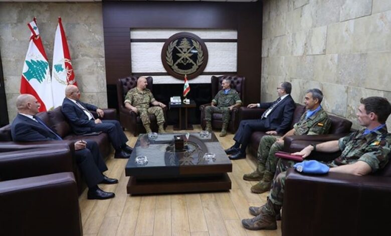 استقبل قائد الجيش العماد جوزاف عون في مكتبه في اليرزة، قائد قوة الأمم المتحدة المؤقتة في لبنان اللواءAroldo Lázaro على رأس وفد مرافق، وتناول البحث علاقات التعاون بين قوات اليونيفيل والجيش اللبناني.