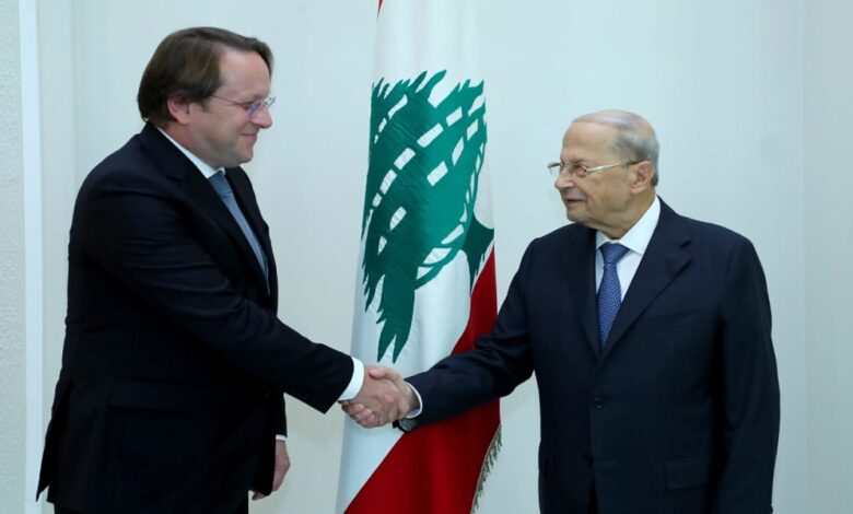 طالب رئيس الجمهورية ميشال عون، خلال استقباله المفوض الأوروبي لشؤون الجوار والتوسع أوليفر فاريلي، بـ”تسهيل عودة النازحين السوريين إلى بلادهم وفق الخطة التي وضعتها الحكومة اللبنانية”، معتبرا أن “تجاهل طلب لبنان يزرع الشكوك في مواقف الدول الكبرى حيال هذا الملف”.