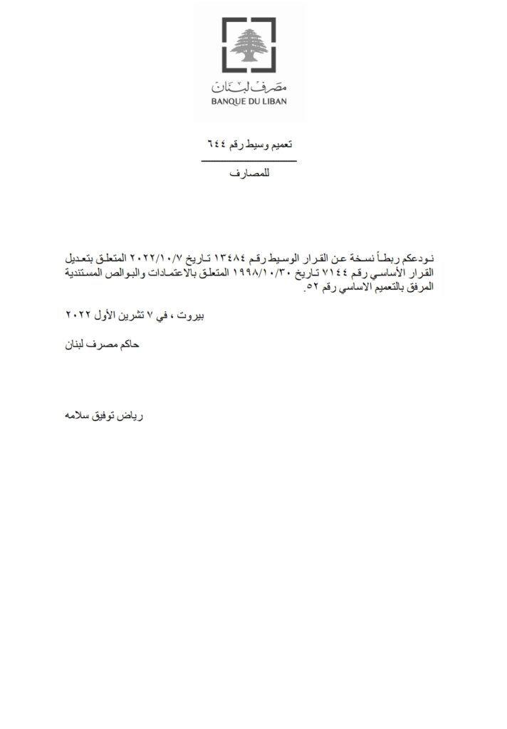 صدر عن مصرف لبنان تعميم طلب فيه استثنائياً من المصارف أخذ موافقة مسبقة من “المركزي” على فتح الاعتمدات أو دفع الفواتير المخصّصة لاستيراد المشتقات النقطية.