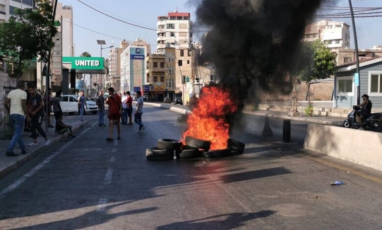 قطع عدد من المحتجين ساحة النجمة ورياض الصلح في مدينة صيدا بالاطارات المشتعلة تعبيرا عن غضبهم بسبب ما آلت اليه ظروفهم المعيشية “التي باتت مستحيلة مع تفلت سعر صرف الدولار مقابل الليرة اللبنانية من دون حسيب او رقيب”.
