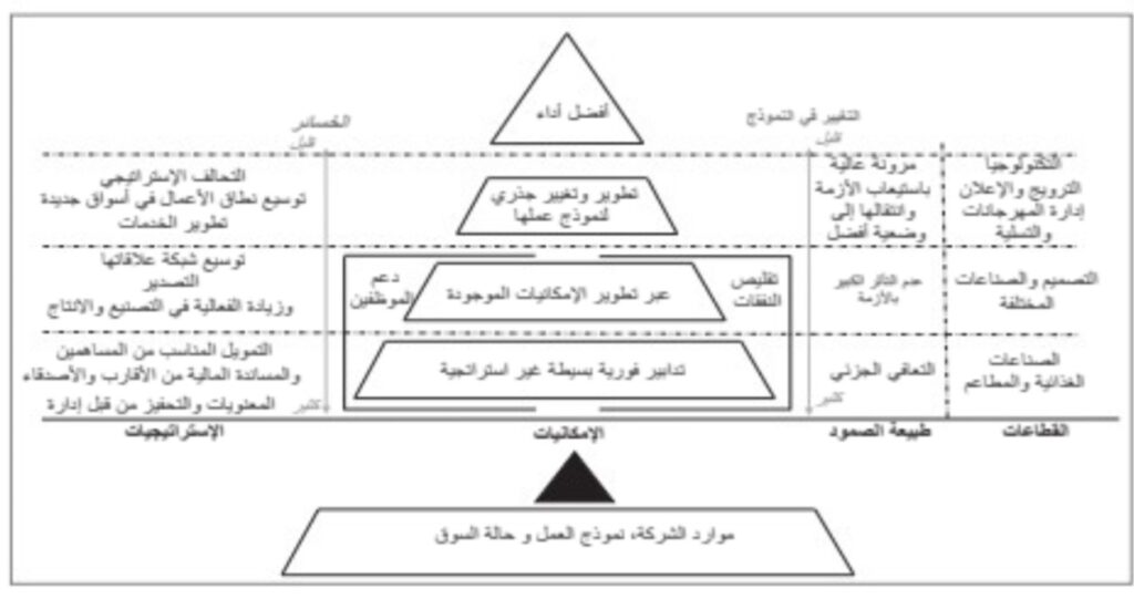 1- الشركات التي تعنى بالصناعات الغذائية والمطاعم، كانت بين أكثر المتأثرين بالأزمة. رغم ذلك، تمكنت من التعافي جزئياً من خلال تدابير فورية بسيطة غير استراتيجية، تمثّلت بالحصول على التمويل المناسب من المساهمين والمساندة المالية من الأقارب والأصدقاء، إضافة إلى ولاء الموظفين الذين شاركوا بتحمّل الأعباء وتقدير الظروف التي تمر بها الشركة. فهذه «النخوة» اللبنانية هبت في النفوس مشكّلة فرادة يجدر التوقف عندها. كما أن المعنويات والتحفيز من قبل إدارة هذه الشركات شكّلا نقطة تحوّل وعامل صمود فريد، ناهيك عن تقليص النفقات بشكل فوري ومناسب.