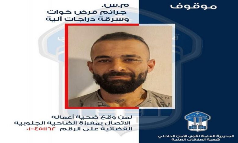 وطلبت المديريّة العامّة “من الذين وقعوا ضحيّة أعماله، الحضور إلى مركز المفرزة المذكورة الكائن في محلّة الاوزاعي ــ ثكنة الشهيد مصطفى علي حسن، أو الاتصال على الرقم: 451162-01 تمهيدًا لاتّخاذ الإجراءات القانونيّة الازمة”.