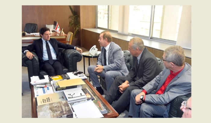 استقبل وزير الاعلام في حكومة تصريف الاعمال زياد المكاري في مكتبه في الوزارة وفدا إعلاميا مصريا، ضم عضو مجلس الشعب ورئيس تحرير جريدة “النهار” أسامة شرشر، نائب رئيس تحرير جريدة “الأهرام” المصرية محمد ثابت، في حضور رئيس تحرير موقع “هلا صور” الدكتور عماد سعيد والاعلامي فادي سعد.