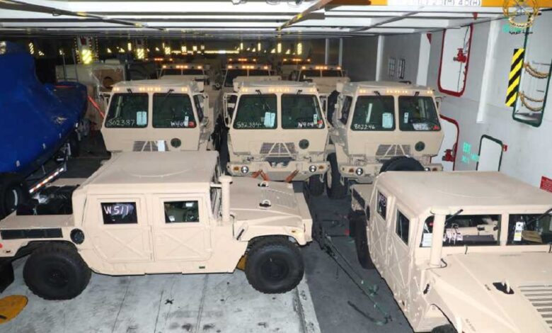 تسلّم الجيش اللّبناني عبر مرفأ بيروت ١٣ آلية من نوع “هامفي” و١١ شاحنة وكمية من الأعتدة العسكرية، في إطار برنامج المساعدات العسكرية الأميركية الخاصة بالجيش اللبناني.